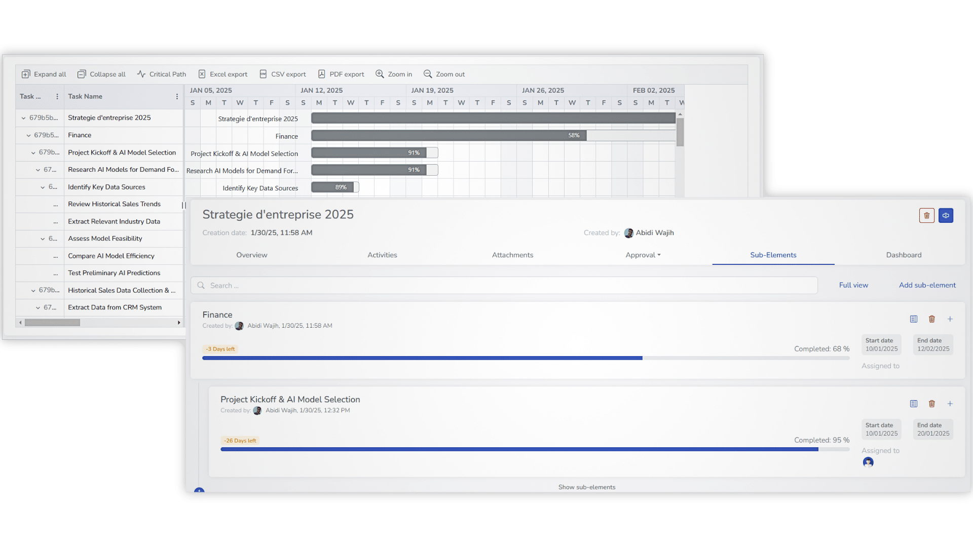 Mit intuitiven Projektmanagement-Tools können Sie den Fortschritt von der Initiierung bis zum Abschluss mithilfe von Gantt-Diagrammen, Aufgabenlisten und Zeitplänen verfolgen und sicherstellen, dass Projektmeilensteine und Ressourcenallokationen im richtigen Kurs liegen.